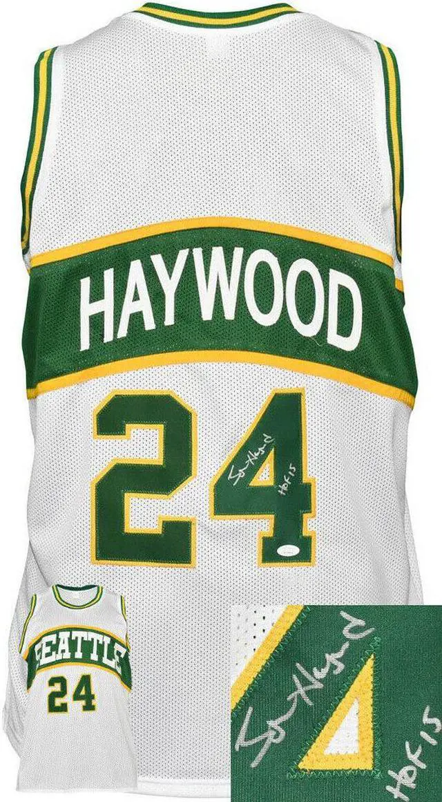 This is a new, in stock, Spencer Haywood signed Seattle White Unlicensed Custom Stitched pro Basketball Jersey with HOF 15 inscription with fully stitched twill numbers on the front and back, there are NO LICENSED TEAM LOGOS, TAGS, BRAND NAMES or PATCHES ON THIS JERSEY & IS NOT AN AUTHENTIC OFFICIALLY LICENSED JERSEY, 100% polyester, made in the Philippines. Size XL (48/50). JSA Witnessed Authentication Sticker with JSA Certificate of Authenticity