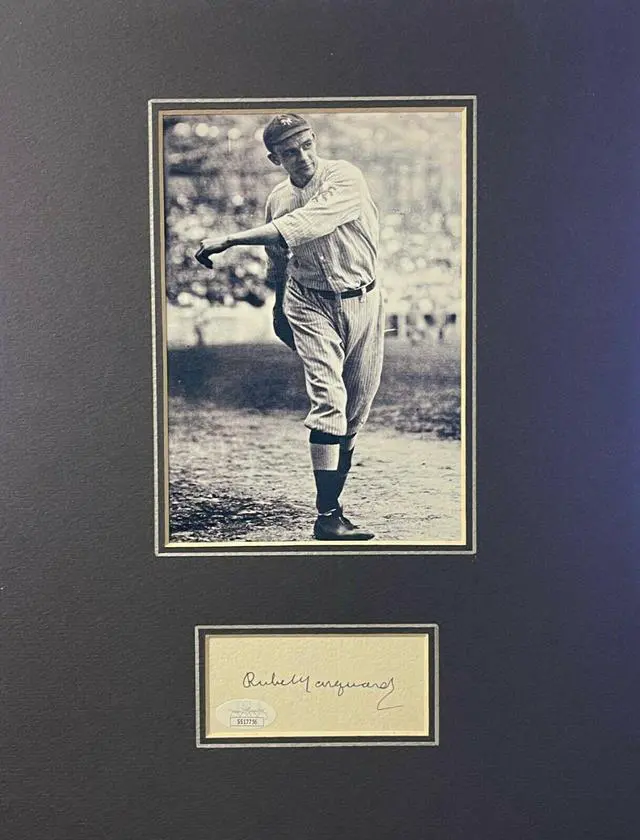 Rube Marguard was an American left-handed pitcher in Major League Baseball in the 1910s and early 1920s. He achieved his greatest success with the New York Giants. He was inducted into the Baseball Hall of Fame in 1971. Rube Marguard has hand signed this 3x5 Cut Sig w/ New York Giants B&W 5x7 Photo Matted 11x14. JSA Authentication Sticker #SS17756 and JSA Certificate of Authenticity