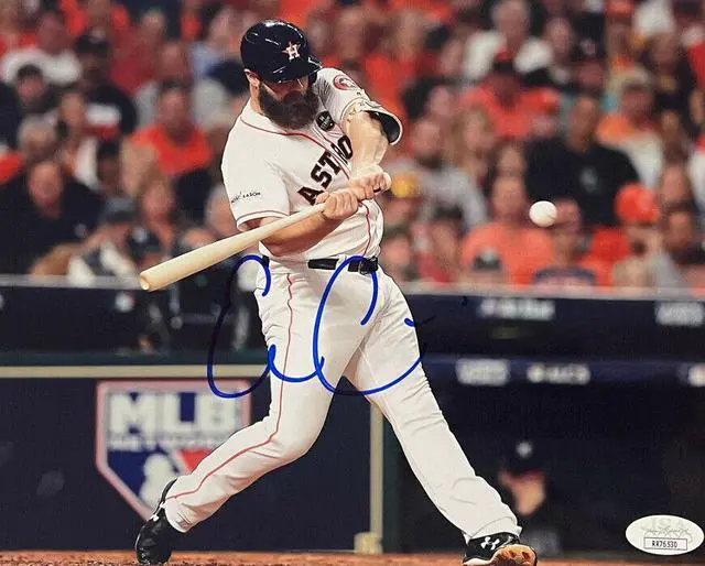 Evan Gattis is an American former professional baseball designated hitter and catcher. He became the Braves' primary catcher in 2014, but was traded to the Astros before the 2015 season. He later won the 2017 World Series with the Astros over the Los Angeles Dodgers. Evan Gattis has hand autographed this Houston Astros 8x10 Photo. JSA Authentication Sticker and JSA Certificate of Authenticity.