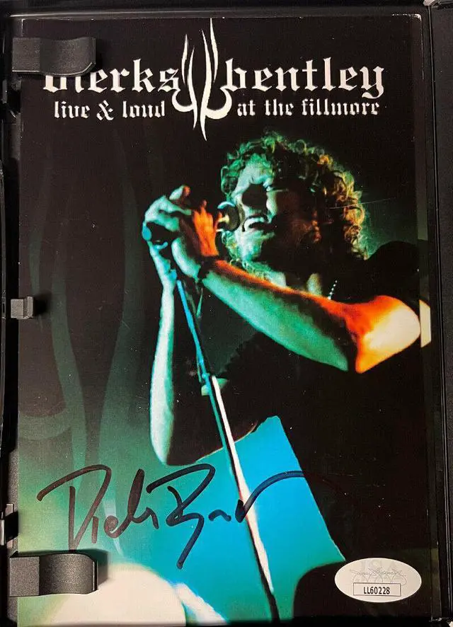 Dierks Bentley is an American singer and songwriter. Bentley's studio albums have accounted for 25 singles on the Hot Country Songs and Country Airplay charts, of which 15 have reached number one. Four more of his singles have reached the top 5. Dierks Bentley has hand signed this 2007 Live & Loud At The Fillmore Booklet/DVD/ Case. JSA Authentication Sticker #LL60228 and JSA Certificate of Authenticity.