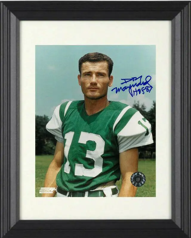 Don Maynard played primarily with the New York Jets. He was a 4 time AFL All-Star selection, won the 1967 AFL All-Star Game Offensive MVP and won one Super Bowl. He was elected into the Pro Football Hall of Fame in 1987. Don Maynard has hand autographed this New York Jets 8x10 Photo with HOF 87 inscription. Certificate of Authenticity from Athlon Sports Collectibles. Custom White Mat and Black Color Frame.