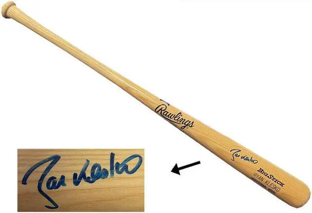 Ryan Klesko hit at least 21 home runs in eight of his 13 major league seasons, with a high of 34 homers in 1996. His most productive season came in 2001, when he hit. 286 with 30 home runs and made the National League All-Star team. Klesko became the first player to hit a home run in three consecutive World Series road games when he did so against the Cleveland Indians in Games 3, 4, and 5 of the 1995 World Series. Ryan Klesko has hand signed this Rawlings Big Stick Pro Model Engraved Bat.