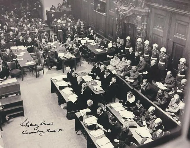 For his work in the Nuremberg trials, Harris was decorated with the Legion of Merit. Whitney Harris has hand signed this 1945-46 WWll Nuremberg Trials Vintage B&W 8x10 photo with Nuremberg Prosecutor inscription. PSA Authentication Sticker #AD55333 and Certificate Of Authenticity from Athlon Sports Collectibles. Very rare signature. Also with GAI Authentication Sticker #GV546118 and Certificate of Authenticity.