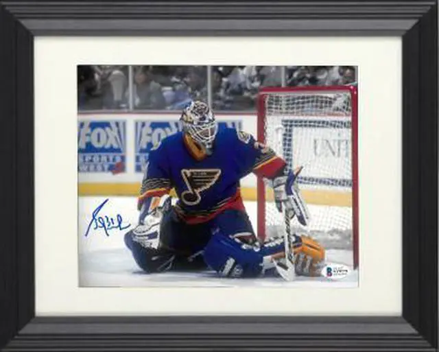 Grant Fuhr is a Canadian former ice hockey goaltender in the NHL. In 2003, he was inducted into the Hockey Hall of Fame. He is best remembered for a decade of stellar play for the Edmonton Oilers in the 1980s. He won a total of five Stanley Cups and was a six time All-Star. In 2017 Fuhr was named one of the '100 Greatest NHL Players' in history. Grant Fuhr has hand autographed this St. Louis Blues 8x10 Photo #31. Beckett Witnessed Authentication Sticker & Beckett Certificate of Authenticity. Custom White Mat and Black Color Frame.