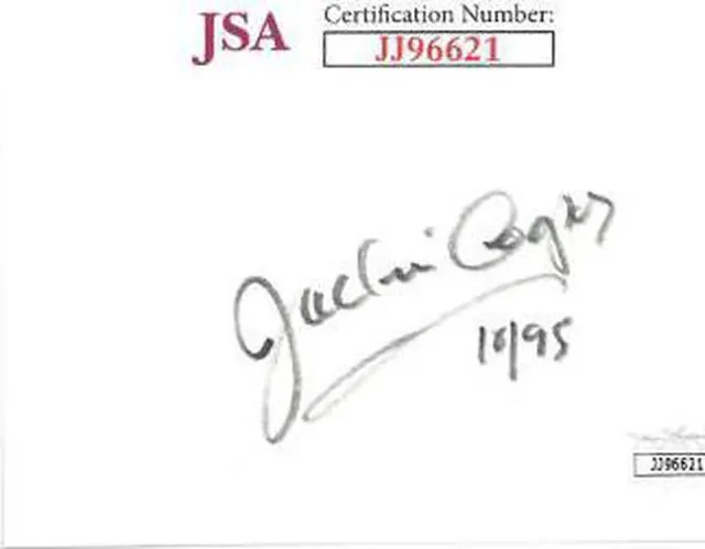 Jackie Cooper was an American actor, television director, producer, and executive. He was a child actor who made the transition to an adult career. Cooper was the first child actor to receive an Oscar nomination. At age 9 he was the youngest performer to be nominated for an Academy Award for Best Actor in a Leading Role, an honor that he received for the film Skippy (1931). Jackie Cooper has hand signed this 3X5 Index Card with 10/95 Inscription. JSA Authentication Sticker & Certificate of Authenticity #JJ96621. Item instock as shown