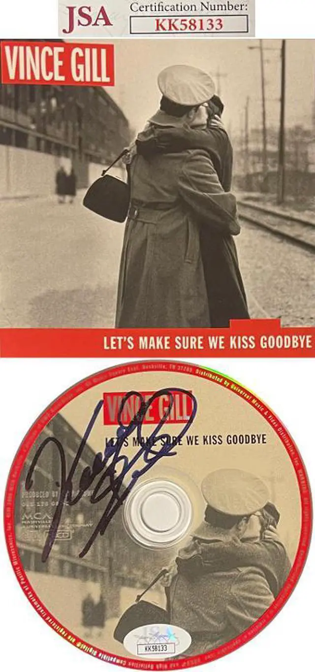 Gill has been married to singer Amy Grant since March 2000. Vince Gill has hand signed this 2000 Let's Make Sure We Kiss Goodbye Album CD w/ Cover & Case. JSA Authentication Sticker #KK58133 and JSA Certificate of Authenticity. Handling/condition as shown.