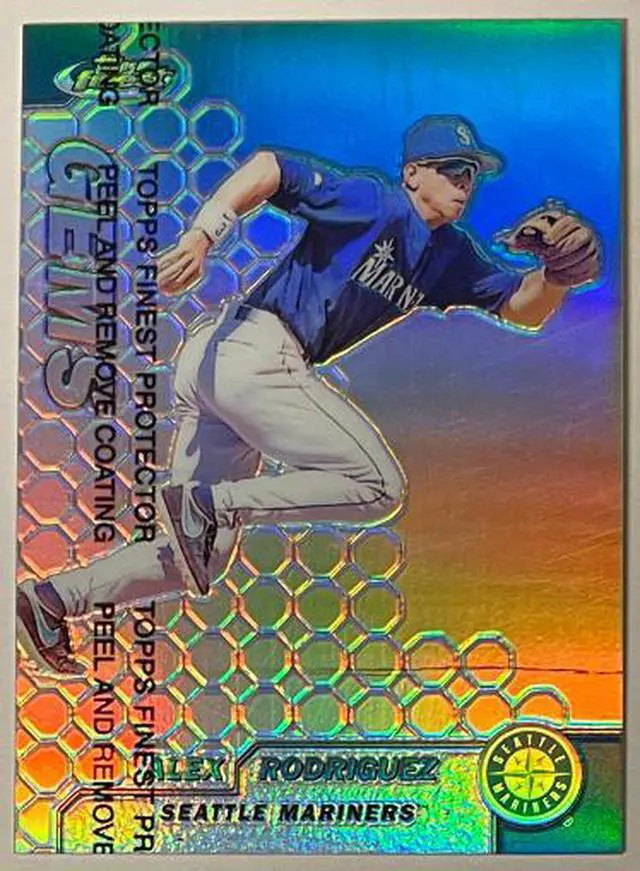 This is an Alex Rodriguez 1999 Topps Finest Refractor Gems Card w/ Coating #105 (Seattle Mariners). Image of actual item instock - as shown.