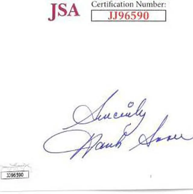Hank Snow was a Canadian-American country music artist. Most popular in the 1950s, he had a career that spanned more than 50 years, he recorded 140 albums and charted more than 85 singles on the Billboard country charts from 1950 until 1980. Snow won numerous awards and is a member of the Country Music Hall of Fame, the Canadian Country Music Hall of Fame and the Canadian Music Hall of Fame. Hank Snow has hand signed this 3X5 Index Card with Sincerely inscription. JSA Authentication Sticker & Certificate of Authenticity #JJ96590. Item instock as shown