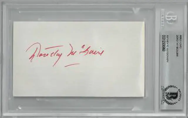 Dorothy McGuire was an American actress. She was nominated for the Academy Award for Best Actress for Gentleman's Agreement (1947) and won the National Board of Review Award for Best Actress for Friendly Persuasion. Dorothy McGuire has hand autographed this 3x5 Index Card. Beckett/BAS Encapsulated #00012556960.