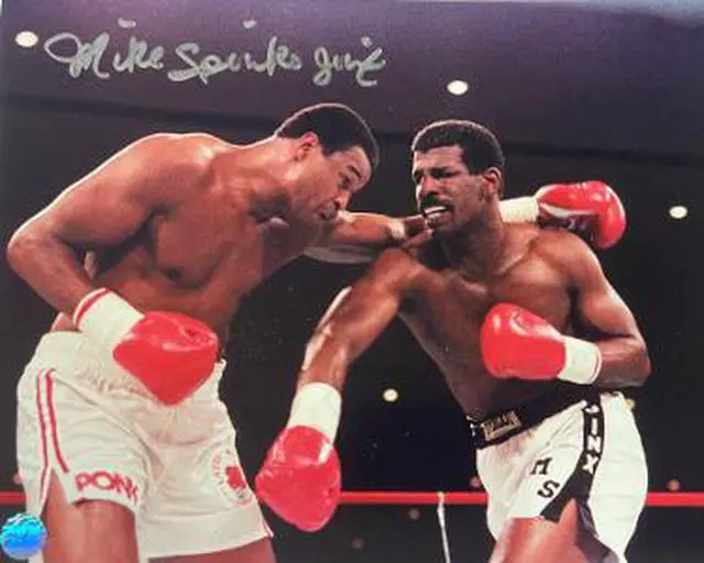 Michael Spinks is an American former professional boxer who competed from 1977 to 1988. He held world championships in two weight classes, including the undisputed light heavyweight title and the lineal heavyweight title. Nicknamed "Jinx", which spawned the nickname of his straight right hand, "The Spinks Jinx", Spinks is the brother of former world heavyweight champion Leon Spinks. Michael Spinks has hand autographed this 8x10 Photo with Jinx inscription vs Larry Holmes. All World Memorabilia Hologram and Certificate of Authenticity.