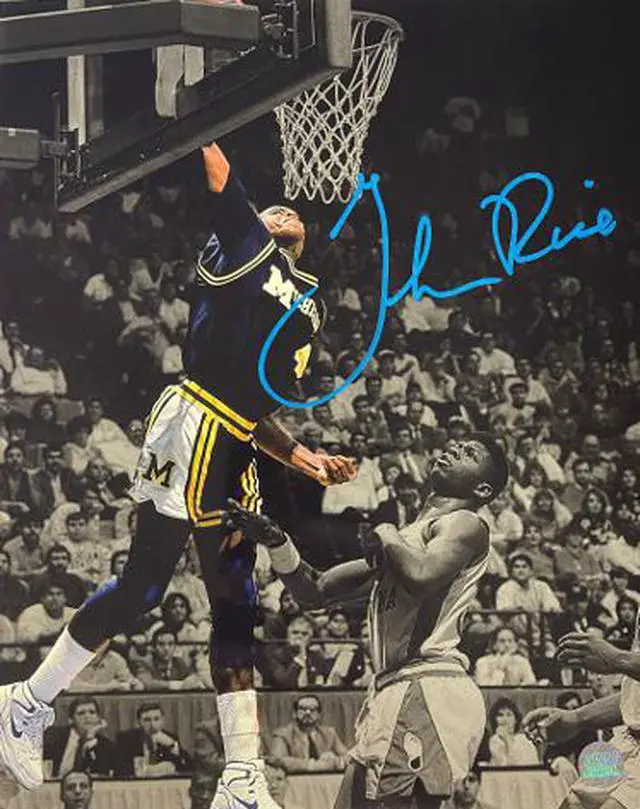 Glen Rice played college basketball for the University of Michigan Wolverines for four seasons (19851989), a starter for three of those seasons. He became the school's all-time leading scorer with 2, 442 points. He led Michigan to the 1989 NCAA Men's Division I Basketball Championship, scoring an NCAA-record 184 points in tournament play. Rice was also voted the tournament's Most Outstanding Player. Glen Rice has hand signed this Michigan Wolverines Spotlight 8x10 Photo. All World Memorabilia Hologram and Certificate of Authenticity