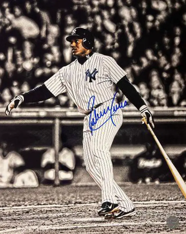Ruben Sierra is a former Major League Baseball outfielder. Sierra goes by the nicknames El Caballo and El Indio. Over 20 seasons, Sierra played for the Rangers, Athletics, Yankees, Tigers, Reds, Blue Jays, White Sox, Mariners and Twins. Ruben Sierra has hand signed this New York Yankees 8x10 Photo. All World Memorabilia Hologram and Certificate of Authenticity.