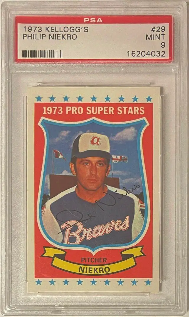 • Philip Niekro 1973 Kellogg's Card #29- PSA Graded 9 Mint (Atlanta Braves)