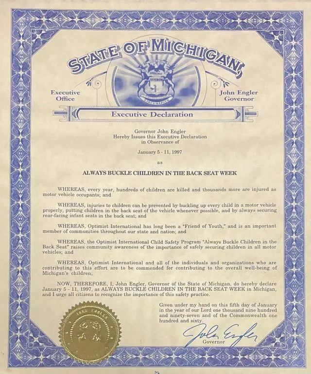 John Engler is an American businessman and politician who served as the 46th Governor of Michigan from 1991 to 2003. John Engler has hand signed this 11x14 State of Michigan Executive Declaration with Governor seal as shown. Certificate of Authenticity from Athlon Sports Collectibles. Imperfections, sold as is.