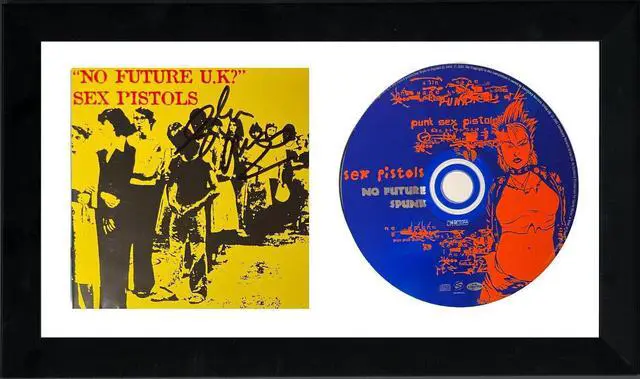 Glen Matlock is an English musician, best known for being the bass guitarist in the original line-up of the punk rock band the Sex Pistols. He is credited as a songwriter on 10 of the 12 songs on the Sex Pistols' only album, Never Mind the Bollocks, Here's the Sex Pistols, although he had left the band early in the recording process, credited as bassist and backing vocalist on only one song on the album, "Anarchy in the U. K. ". Sex Pistols bassist Glen Matlock has hand signed this 1989 "No Future U.