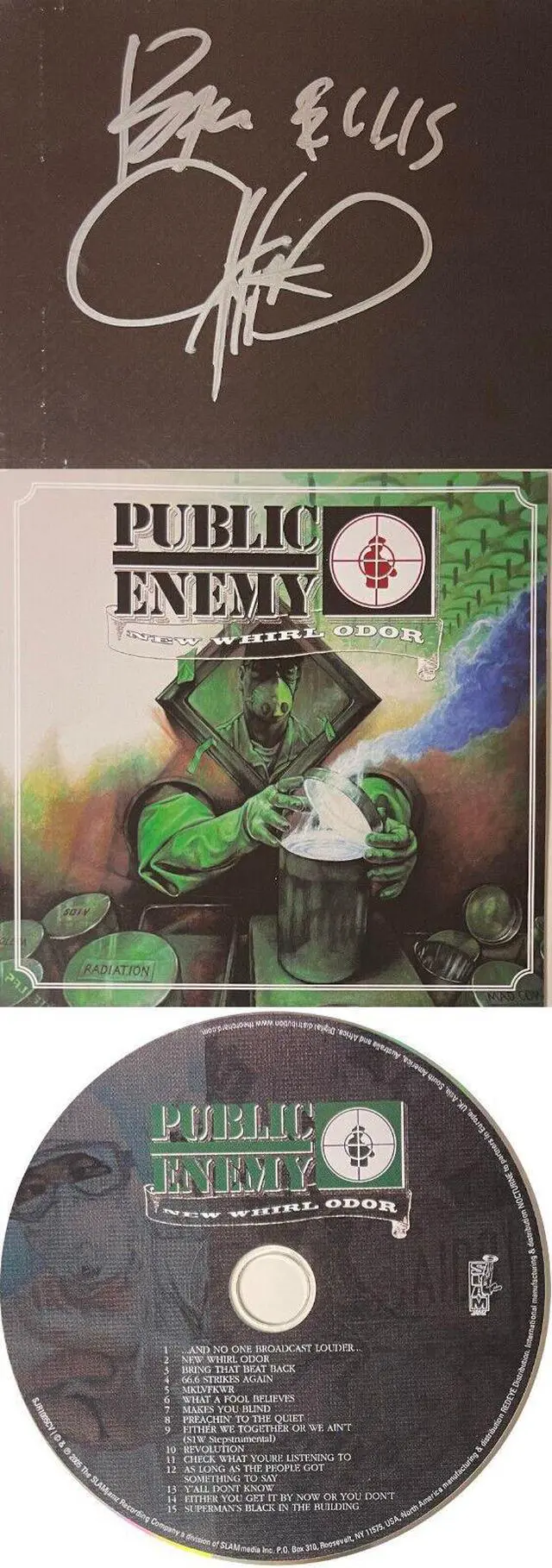 New Whirl Odor has followed that Public Enemy tradition in trendsetting, while never repeating themselves. 'Bring That Beat Back', 'Revolution', 'Preaching To the Quiet', and 'Superman's Black In the Building' tracks. Chuck D's delivery is awesome as ever. The messages are powerful and the P. E. albums are always full of stuff.. Chuck D has hand Signed this 2005 New Whirl Odor Album Cover Booklet w/ CD & Case Peace. Certificate of Authenticity from Athlon Sports Collectibles. Handling/condition as shown. Signed the back cover.