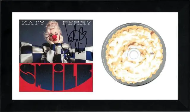 Katy Perry is an American singer, songwriter, and television judge. Perry has nine U. S. Billboard Hot 100 number one singles and has received various awards, including four Guinness World Records, five Billboard Music Awards, five American Music Awards, a Brit Award, and a Juno Award. She has been included in the annual Forbes lists of highest-earning women in music from 2011 to 2019. Katy Perry has hand signed this 2020 Smile Album Cover w/ CD & Case. Custom White Mat and Black Frame as shown to overall size 6.5 inch x 12 inch.