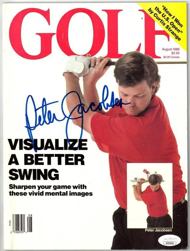 Jacobsen has won seven tournaments on the PGA Tour, the last coming at the 2003 Greater Hartford Open at the age of 49, making him one of the oldest players ever to win on the PGA Tour. Peter Jacobsen has hand signed this Golf Full Magazine August 1989- JSA Authentication #EE63243 and JSA Certificate of Authenticity. No Label/Handling/condition as shown