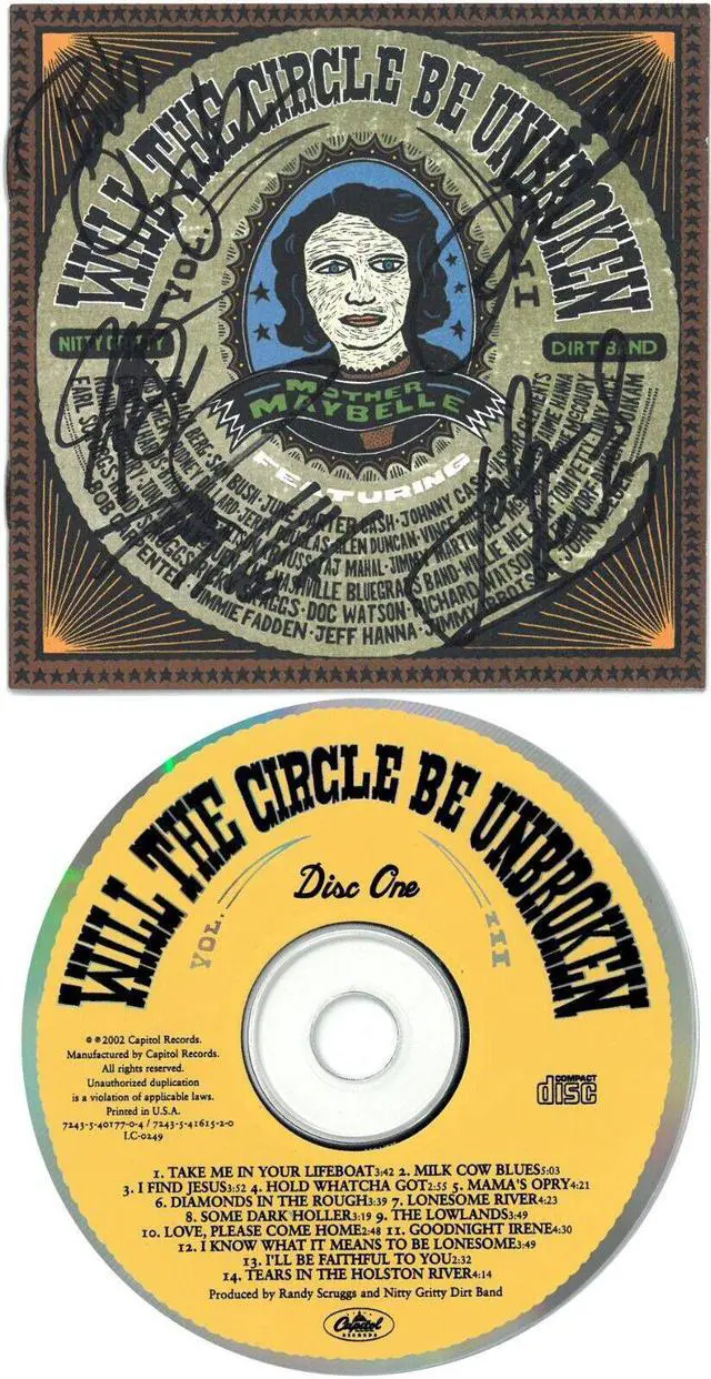 " Jimmie Fadden, Jeff Hanna, John McEuen, Bob Carpenter and Jimmy Ibbotson have hand signed this NITTY GRITTY DIRT BAND 2002 Will The Circle Be Broken Album Cover CD Booklet VOL. 3, 2 CD Set 5-sigs. Music Sign Certificate of Authenticity.