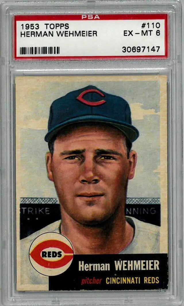 Herman Wehmeier 1953 Topps Baseball Card #110- PSA Graded 6 EX-MT (Cincinnati Reds)