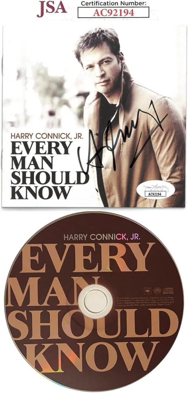 Harry Connick, Jr. 's 2013 studio album Every Man Should Know finds the New Orleans native delving into a handful of original songs that touch upon country, pop, and R&B, with only a few jazz-oriented cuts in the mix. Harry Connick, Jr has hand signed this 2013 Every Man Should Know Album Cover Booklet w/ CD, Case. Bold black signature. JSA Authentication #AC92194 and JSA Certificate of Authenticity. Handling/condition as shown.