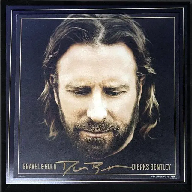 Dierks Bentley JUST released his 10th studio album on Capitol Records Nashville on February 24, 2022. The brand-new album will include 14 songs and features duets with Ashley McBryde and Billy Strings. His latest hit single, "Gold, " is currently rising on the Country charts. Dierks has sold over 10M albums worldwide and garnered over 4.2B streams. He has 21 #1 songs, 3 CMA Awards, 14 GRAMMY nominations and is a member of the Grand Ole Opry. Bold full gold signature. Dierks Bentley has hand Signed this 2023 Gravel And Gold 11x11 Art Card, Album Cover/LP/Vinyl Record.