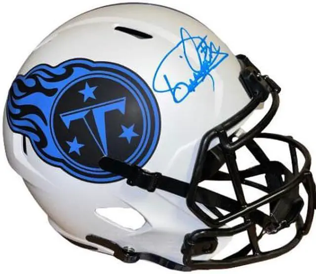Derrick Henry was drafted in the second round of the 2016 NFL draft by the Titans. He led the NFL in rushing yards for the 2019 season, as well as rushing touchdowns. Henry signed a new four-year $50 million contract with the team on July 15, 2020. Derrick Henry has hand autographed this Tennessee Titans Lunar Eclipse Speed FS Rep Helmet #22. Photo of the signing, Beckett Witnessed Authentication Sticker with Beckett Certificate of Authenticity. Private signings 9-13-21 & 12-12-22 in Nashville, TN