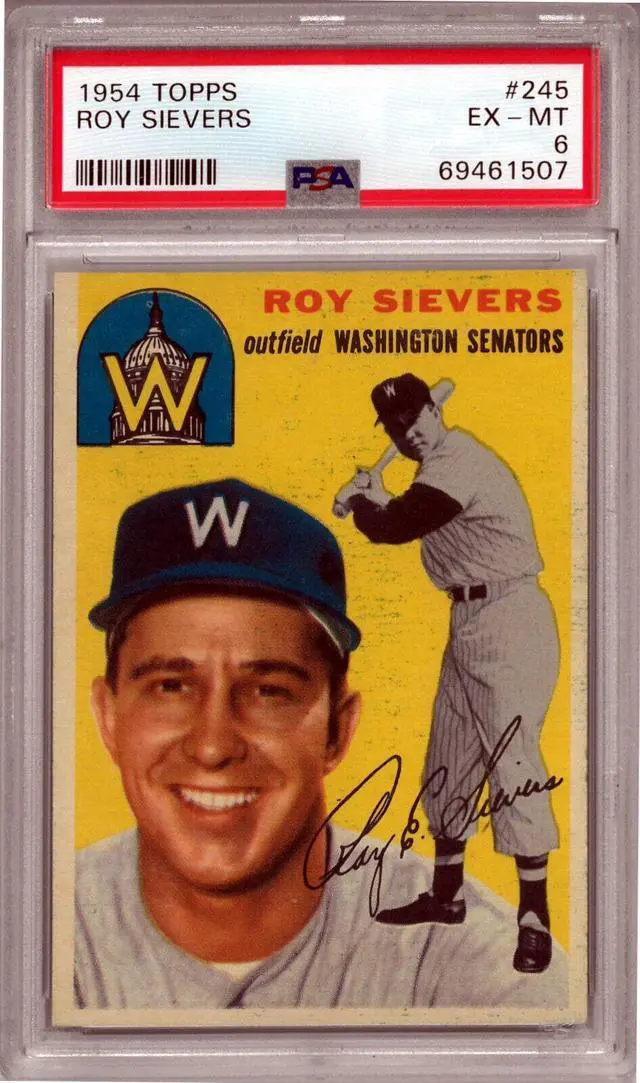This is a Roy Sievers 1954 Topps Baseball Card #245- PSA Graded 6 EX-MT (Washington Senators). Image of actual item instock - as shown. New PSA Label-Graded February 2023