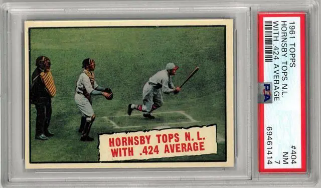 Rogers Hornsby 1961 Topps Tops NL with .424 Average Baseball Card #404- PSA Graded 7 NM (St. Louis Cardinals)
