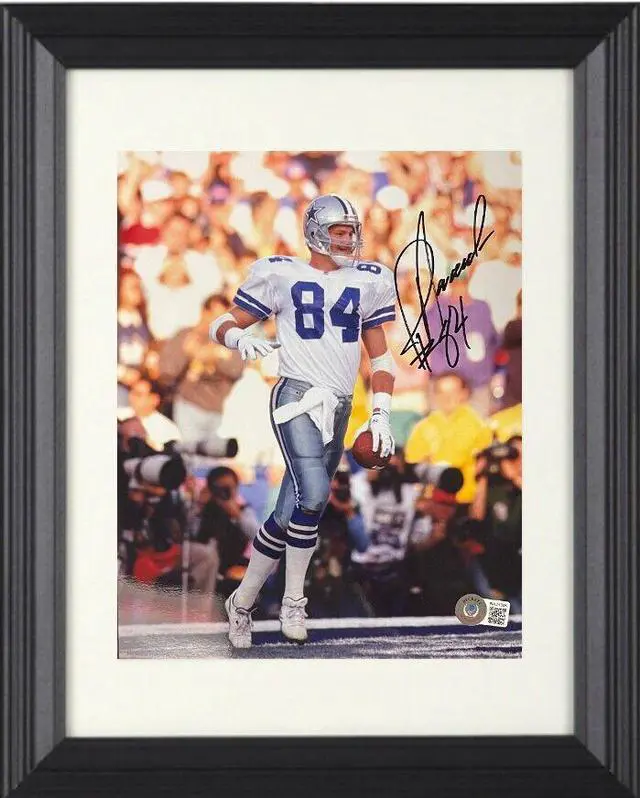 Jay Novacek was a key contributor for Dallas in the early 1990s, assisting them to three Super Bowl wins in four seasons. In those games, he recorded a combined total of 17 receptions for 148 yards and two touchdowns. In his 11 seasons, Novacek recorded 422 receptions for 4, 630 yards and 30 touchdowns. Jay Novacek has hand signed this Dallas Cowboys 8x10 Photo #84. Beckett Witnessed Hologram and Certificate of Authenticity. Custom White Mat and Black Color Frame.