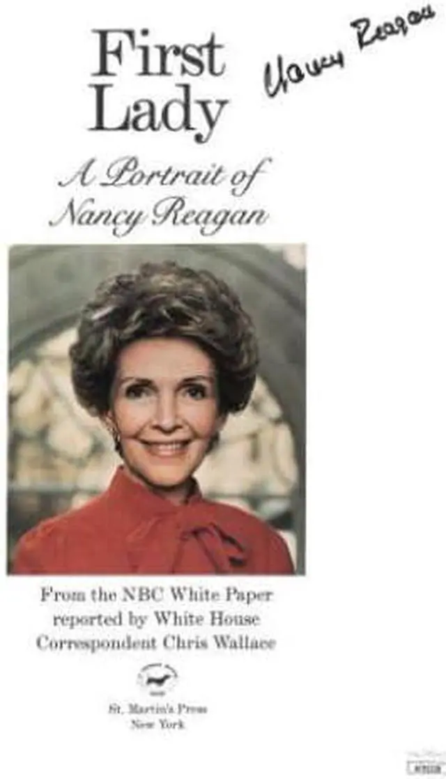 Nancy Reagan was an American film actress and first lady of the United States from 1981 to 1989. She was the second wife and widow of Ronald Reagan, the 40th president of the United States. Reagan became First Lady of the United States in January 1981, following her husband's victory in the 1980 presidential election. Nancy Reagan has hand signed this 1986 First Lady A Portrait of Nancy Reagan Hardcover Book. JSA Authentication #AC92228 and JSA Certificate of Authenticity w/ Beckett Review Order ID #28127 and Review Order Item ID #33307. Handling/condition/wear as shown