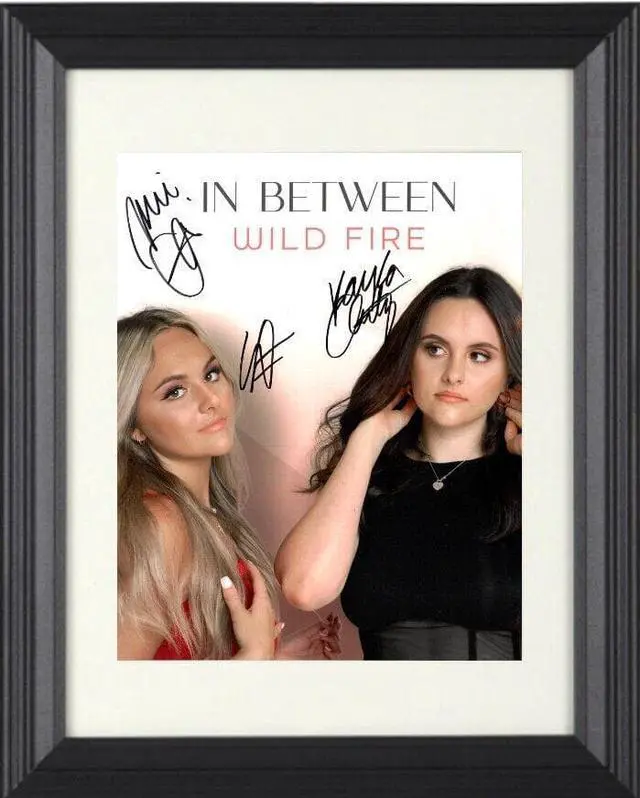Wild Fire is a country sass & pop rock sister duo from Houston, Texas, USA. Noted as one of the best upcoming young artist duos out there. Kelli & Kayla Iutzwig have Dual Signed this brand new 2022 Wild Fire Album Cover 8x10 Photo. Bold black full pristine signatures. Custom White Mat and Black Color Frame. Certificate of Authenticity from Athlon Sports Collectibles.