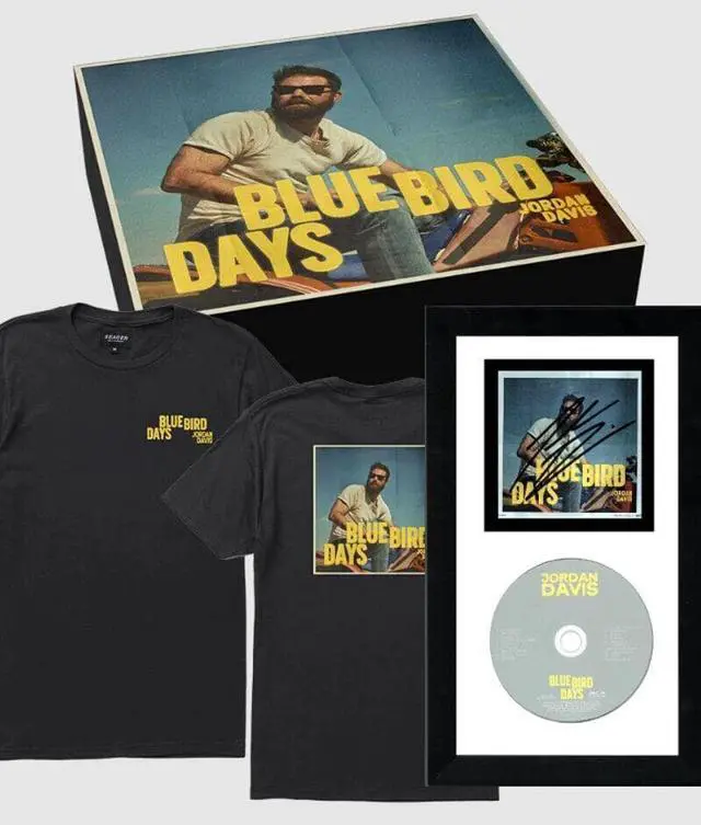 Jordan Davis just released his 2nd Studio Album, Bluebird Days, on February 17, 2023. The highly anticipated album features 17 songs, including the #1 double-platinum CMA song of the year- "Buy Dirt" Featuring Luke Bryan. This is an official Fan-Club Exclusive Jordan David CD Box set featuring his newest album, Bluebird Days. The Box set comes with a signed, custom printed 4x4 Photo card with the new cd and a black Jordan Davis Seager T-Shirt (Size Large) with the Album Cover Art printed on the back. Certificate of Authenticity from Athlon Sports Collectibles.