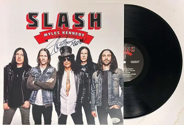 4 is the fourth studio album by Slash featuring Myles Kennedy and the Conspirators, and Slash's fifth solo album overall. It was released on February 11, 2022, as the first album from the new Gibson Records label. The album was produced by country producer Dave Cobb in Nashville. Slash has hand signed this Myles Kennedy & Conspitators 4 12x12 Flat w/Album Cover/LP/Vinyl/Record. JSA Authentication #AC92580 and JSA Certificate of Authenticity. Also includes Guitar Pick.