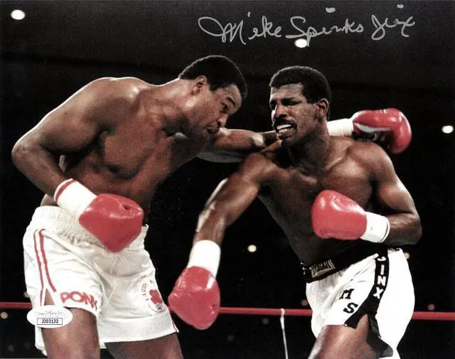 Michael Spinks is an American former professional boxer who competed from 1977 to 1988. He held world championships in two weight classes, including the undisputed light heavyweight title and the lineal heavyweight title. Nicknamed "Jinx", which spawned the nickname of his straight right hand, "The Spinks Jinx", Spinks is the brother of former world heavyweight champion Leon Spinks. Michael Spinks has hand autographed this 8x10 Photo with Jinx inscription vs Larry Holmes. JSA Authentication and JSA Certificate of Authenticity.