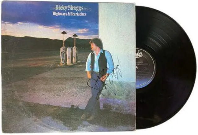 Ricky Skaggs is an American country and bluegrass singer, musician, producer, and composer. He primarily plays mandolin; however, he also plays fiddle, guitar, mandocaster and banjo. Skaggs was inducted into the Country Music Hall of Fame in 2018. Ricky Skaggs has hand signed this 1982 Highways & Heartaches Album Cover/LP/Vinyl Record. JSA Authentication #GG08431 with JSA Certificate of Authenticity. Vinyl records ARE INCLUDED with the signed album cover. We cannot offer an accurate condition grade or assessment regarding either the cover or vinyl record/disc condition. All album covers and vinyl records/discs are in USED condition and will show some signs of handling, as shown.