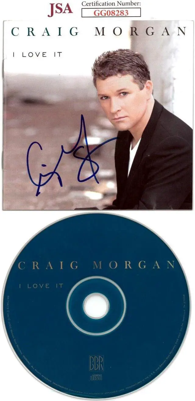 Craig Morgan is an American country music artist. A veteran of the United States Army as a forward observer, Morgan began his musical career in 2000. Morgan has charted seventeen times on the Billboard country charts. Craig Morgan has hand signed this 2002 I Love It Album Cover Booklet w/ CD & Case. JSA Authentication #GG08283 and JSA Certificate of Authenticity. Handling/condition as shown.