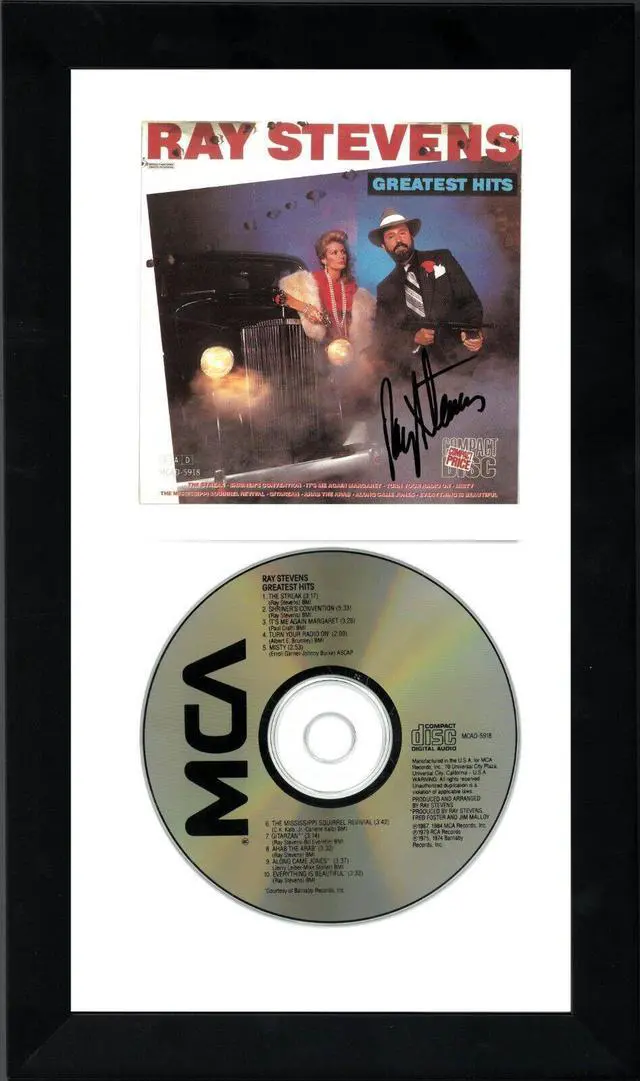 Ray Stevens, is an American country and pop singer-songwriter and comedian, known for his Grammy-winning recordings "Everything Is Beautiful" and "Misty", as well as comedic hits such as "Gitarzan" and "The Streak". He has been inducted into the Nashville Songwriters Hall of Fame, the Georgia Music Hall of Fame, and the Christian Music Hall of Fame; and received gold albums for his music sales. In 2019, he was inducted into the Country Music Hall of Fame and Museum. Ray Stevens has hand signed this 1987 Greatest Hits Album Cover Booklet w/CD & Case.