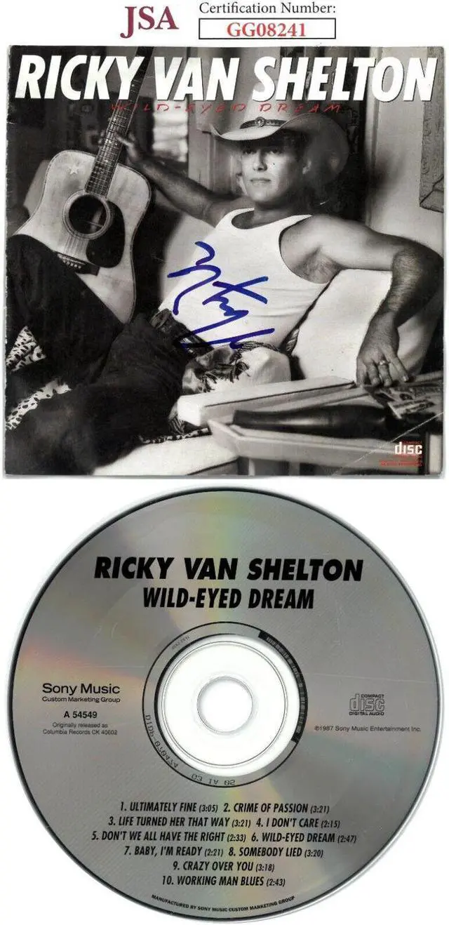 Ricky Van Shelton is an American former country music artist. Active between 1986 and 2006, he charted more than twenty singles on the Billboard Hot Country Songs charts. He has also released nine studio albums, of which his first four have all been certified platinum by the Recording Industry Association of America. Ricky Van Shelton has hand signed this 1987 Wild-Eyes Dream Album Cover Booklet w/ CD & Case. JSA Authentication #GG08241 with JSA Certificate of Authenticity. Handling/condition as shown