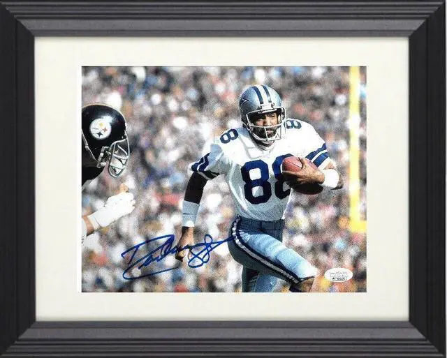 Drew Pearson was named one of the Top 20 Pro Football All-Time Wide Receivers, he was also recognized for his achievements by being named to the NFL 1970s All-Decade Team. Pearson helped the Cowboys to three Super Bowl appearances and a victory in Super Bowl XII in 1978. He also scored a touchdown in Super Bowl X. Drew Pearson has hand autographed this Dallas Cowboys 11x14 Photo #88. JSA Witnessed Authentication Sticker with JSA Certificate of Authenticity. Custom White Mat and Black Color Frame.