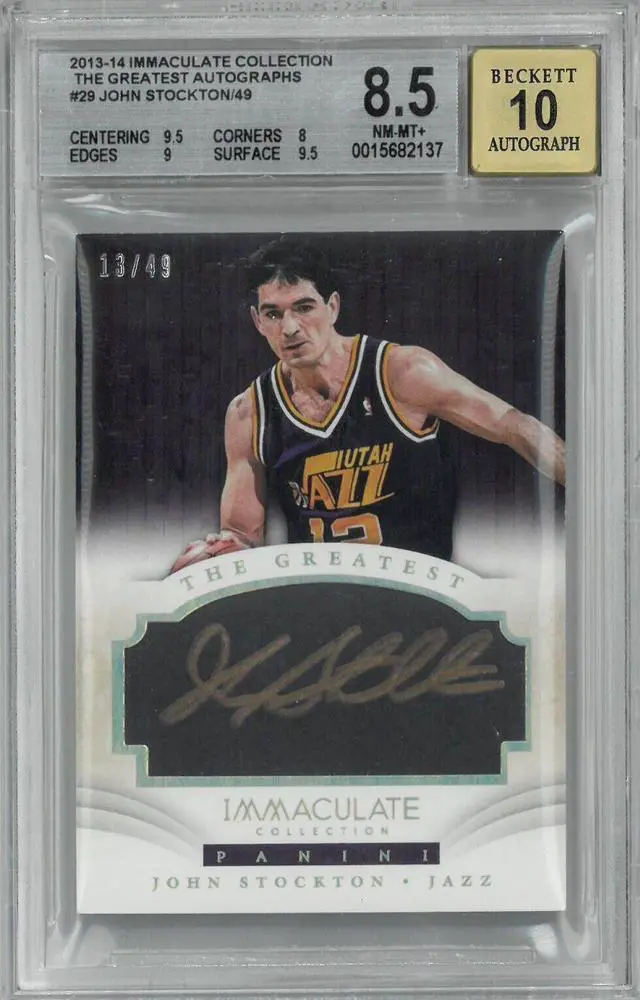 John Stockton signed 2013-14 Immaculate Collection The Greatest Autographs On Card Auto #29- /49- Beckett/BGS Graded 8.5 NM-MT+/