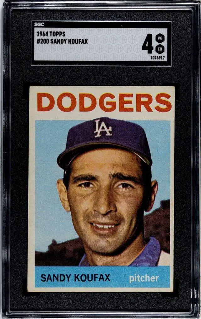 This is a Sandy Koufax 1964 Topps Card #200- SGC Graded 4 VG-EX (Los Angeles Dodgers). Image of actual item instock - as shown.