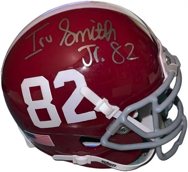 Irvin Martin Smith Jr. is an American football tight end for the Cincinnati Bengals of the National Football League (NFL). He played college football at Alabama and was drafted in second round of the 2019 NFL Draft by the Vikings. Irv Smith Jr. has Hand Signed this Alabama Crimson Tide Schutt #82 Authentic Mini Helmet. Bold, silver full pristine right side signature, inscribed #82. Certificate of Authenticity from Athlon Sports Collectibles.
