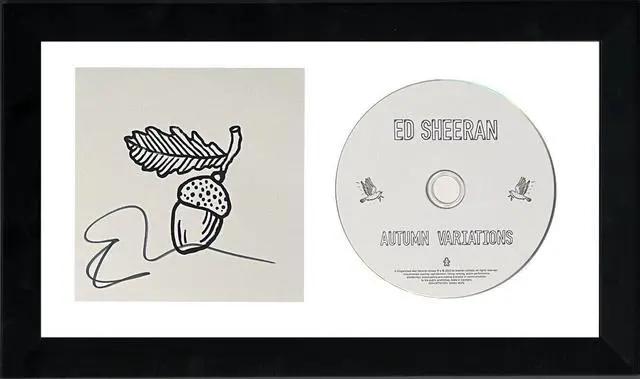 Autumn Variations is the seventh studio album by English singer-songwriter Ed Sheeran. It was released on 29 September 2023 through his record label, Gingerbread Man Records. The album also serves as Sheeran's second project of 2023, following the May release of his previous album and is the first studio album for which he owns the copyright. Ed Sheeran Signed has hand signed this 4.75 x 4.5 CD art card and Booklet w/ Brand new un-played CD. Nice black signature. Certificate of Authenticity from Athlon Sports Collectibles. Custom White Mat and Black Frame as shown to overall size 6.5 inch x 12 inch