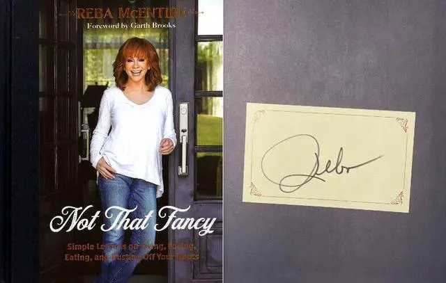 Titled Not That Fancy: Simple Lessons on Living, Loving, Eating, and Dusting Off Your Boots, the lifestyle book features everything from deeply personal stories to lifestyle tips, tricks, and recipes from the star herself. Released on Oct. 10, 2023, Not That Fancy, complete with forward by Garth Brooks, is an intimate look into McEntires lifestyle, one that she insists is not that fancy. Reba McEntire has hand signed this 2023 Not That Fancy Hardcover Bookplated Edition. Certificate of Authenticity from Athlon Sports Collectibles. Exact signature/book plate as shown.