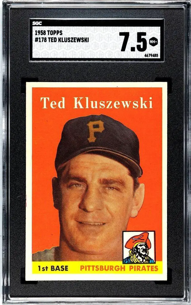 This is a Ted Kluszewski 1958 Topps Baseball Card #178- SGC Graded 7.5 NM+ (Pittsburgh Pirates). Image of actual item instock - as shown.