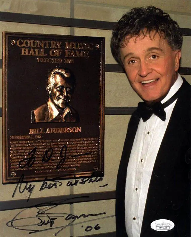 Bill Anderson, known as Whisperin Bill Anderson, is an American country music singer, songwriter and television personality. He has been a member in long standing of the weekly Grand Ole Opry radio program and stage performance in Nashville, Tennessee, since 1961. He has released more than 40 studio albums and has reached No. 1 on the country charts seven times. Anderson is a member of the Grand Ole Opry, the Country Music Hall of Fame, the Songwriters Hall of Fame and the Nashville Songwriters Hall of Fame. Bill Anderson has hand signed this 8x10 Photo with To DJ My Best Wishes '06 inscription.