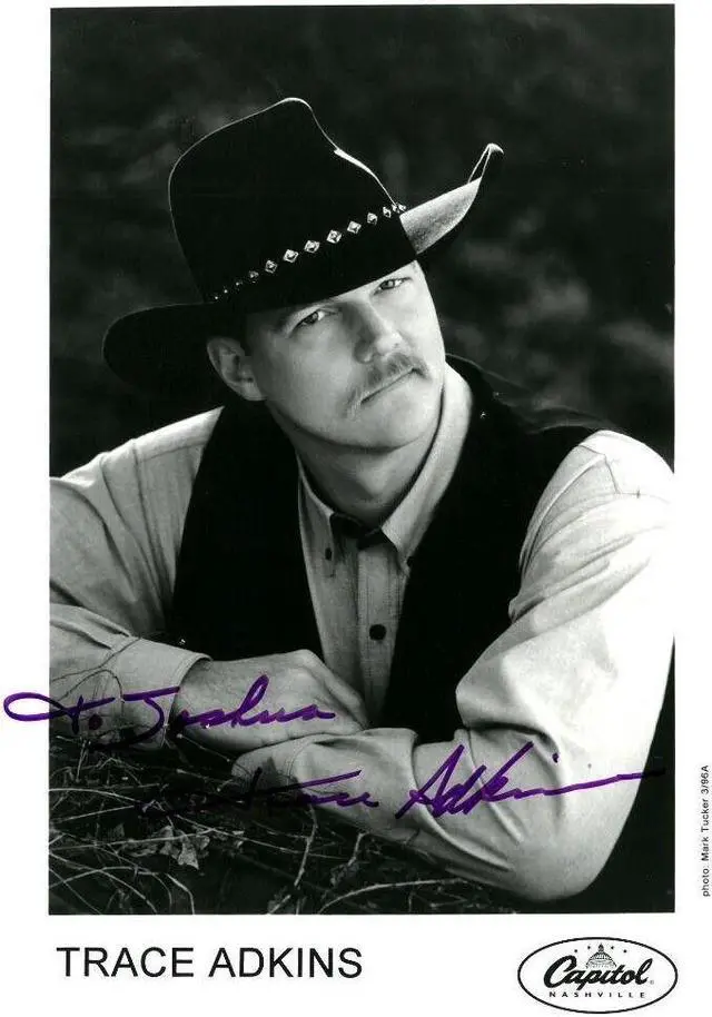 Trace Adkins is an American country singer and actor. Adkins made his debut in 1996 with the album Dreamin' Out Loud, released on Capitol Records Nashville. Since then, Adkins has released ten more studio albums and two Greatest Hits compilations. Adkins is widely known for his distinctive bass-baritone singing voice. Trace Adkins has hand signed this Capitol Nashville B&W Promo 8x10 Photo with To Joshua inscription. Certificate of Authenticity from Athlon Sports Collectibles. Imperfection/pin holes/dings, as shown, sold as is, no returns.