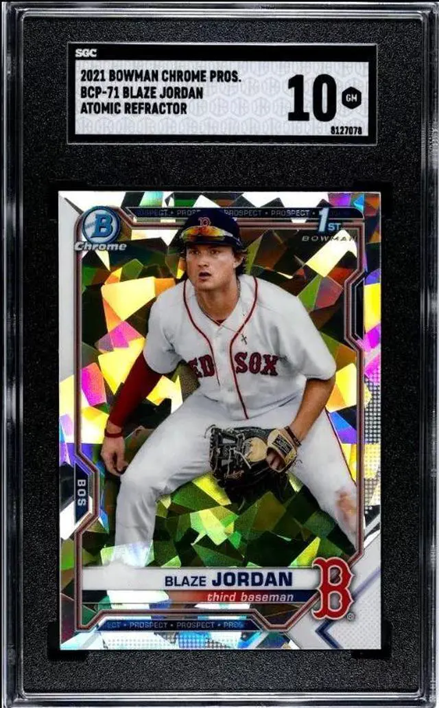 This is a Blaze Jordan 2021 Bowman Chrome Prospects Atomic Refractor Rookie Card (RC) #BCP-71- SGC Graded 10 Gem Mint (Boston Red Sox). Image of actual item instock - as shown.
