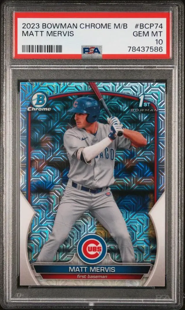 • Matt Mervis 2023 Bowman Chrome M/B Rookie Card (RC) #BCP74- PSA Graded 10 Gem Mint (Chicago Cubs)
